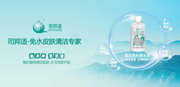 ? ? ? ?本公司研發(fā)的司邦適蛋白表面活性因子,不僅對人體皮膚及粘膜沒有刺激,同時具有對皮膚很強的清潔能力;可以祛除人體皮膚上的異味,并且具有較強的抑菌功效。使用后無需用水沖洗皮膚仍感到舒適爽滑;基于上述原因我們研發(fā)的司邦適免水清潔系列產(chǎn)品。主要適用于各種主觀或者客觀上不方便全身或局部皮膚清潔的人群。